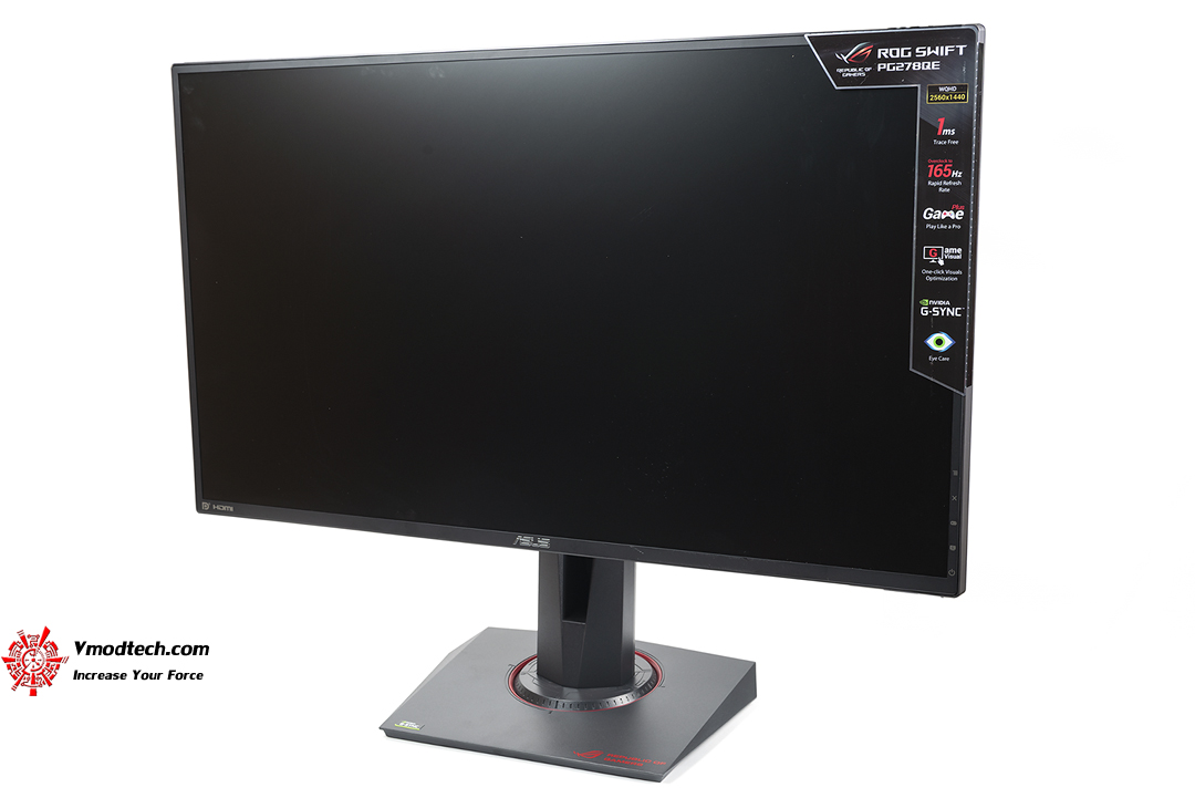 ASUS ROG Swift PG278QE ตัวจอมีขนาด 27 นิ้ว ความละเอียด 2560 x 1440 รีเฟรชเรทสูง 165 Hz อัตราส่วน 16:9 ตัวจอนั้นสามารถหมุนเพื่อแสดงผลแบบตั้งหรือ Pivot ได้ ก้มเงยได้ ปรับสูงต่ำได้ รวมถึงหันซ้ายขวาได้สะดวกสบายมาก
