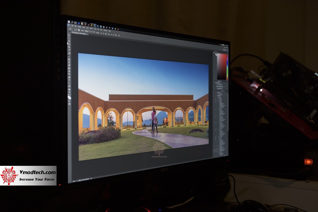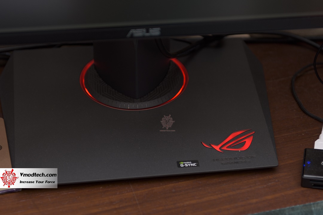 และเมื่อเสียบใช้งานนั้น บริเวณฐานนั้นจะมีแสงสว่างเปล่งออกมาสมกับความเป็น ROG Series ในแง่ของ material ของตัวจอนะครับ ผมให้เต็มสิบเลย คือสวยงามทุกมุมมอง แข็งแรง แข็งแกร่งมากเมื่ออยู่บนโต๊ะ ไม่มีจุดใดเลยครับที่แสดงถึงความอ่อนด้อยของวัสดุ มีเสถียรภาพมากๆ ซึ่งตรงนี้ผมเองเป็นอีกคนนึงที่ใช้จอ ASUS PQ321 ขนาด 32 นิ้วแบบ 4K มาเป็นเวลานาน ผมว่าการออกแบบของ ASUS นั้นพรีเมียมมากครับ ในส่วนของพาแนลและการแสดงผล ASUS ROG SWIFT PQ279Q นั้นจะใช้พาแนลแบบ IPS ซึ่งหลังจากได้รับการคาลิเบรทแล้ว ความเที่ยงตรงของสีนั้นถือว่าอยู่ในเกณฑ์ที่ดีมากเลย ซึ่งเมื่อมาใช้งานจริงกับการแต่งภาพหรือดูหนัง สีสรรนั้นก็อยู่ในเกณฑ์ที่ดีครับ ตินิดเดียว แม้ว่าจะทำการปรับจูนลดสีในโทนมาเจนต้าระหว่างทำการคาริเบรทแล้วก็ตาม โทนนี้ยังตามมาหลอกหลอนเล็กน้อยเมื่อต้องการความเที่ยงตรงของสีแบบสุดๆ