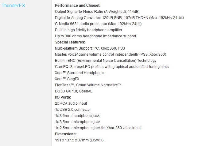 รายละเอียดของ ThunderFX จากบนหน้าเว็บของ ASUS ครับ