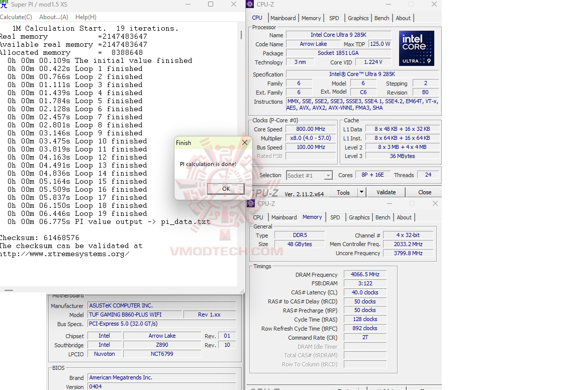 ASUS TUF GAMING B860-PLUS WIFI REVIEW : SuperPI 1M 1Thread, 32M 1Thread & 32M 8Threads (4/9)