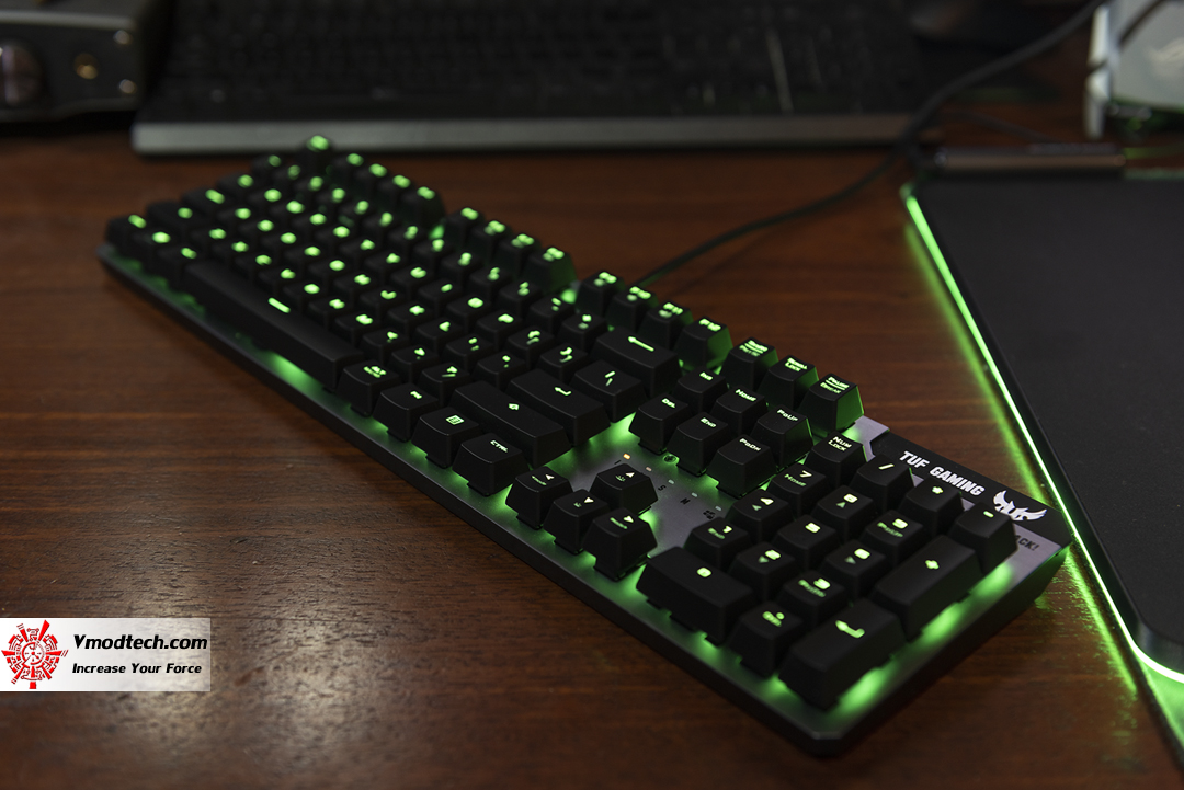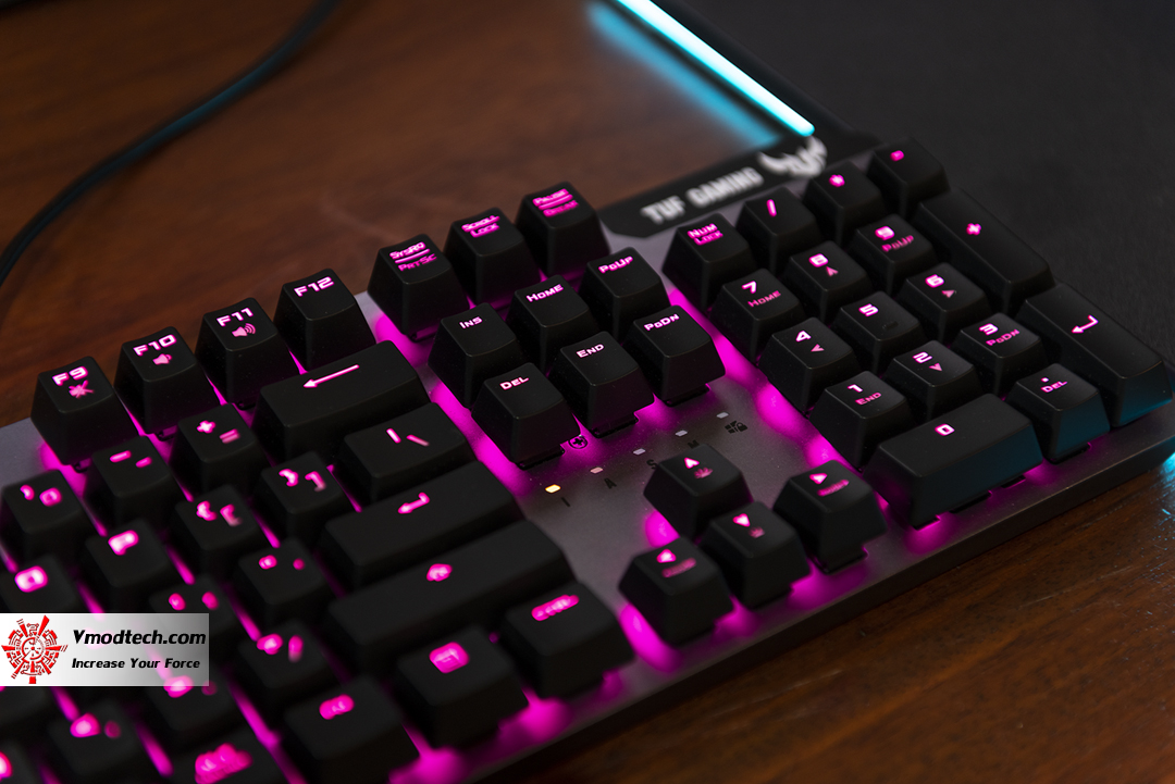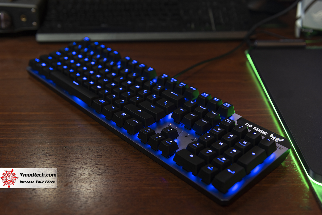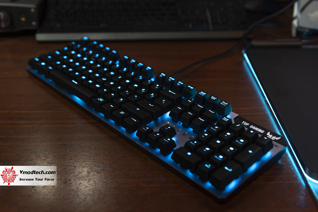 ฟีลลิ่งในการใช้งานเจ้า TUF Gaming K7 สำหรับผมนั้น ตอนกดปุ่มก็นิ่มสบายครับให้ความรู้สึกคล้ายกับสวิทซ์แบบ mechanical เลย แต่หากถามว่าสัญญาณเร็วกว่ามั๊ยนี่ ผมไม่ทราบนะครับ อาจจะเร็วแต่ผมเองไม่อาจจะรับรู้ได้ แต่ดูจากสเปกแล้วน่าสนใจมาก ด้านแสงสีนี่ หลังจากที่ได้ใช้งานร่วมกับ ASUS ROG GLADIUS II Wireless | ASUS ROG Balteus RGB gaming mouse pad แล้วนี่รู้เลยครับ สวยงามแบบดูดีมาก และอย่างที่ได้กล่าวไปแล้วคือ มันสามารถปรับแต่งแสงสีให้กับ TUF Gaming K7 ของคุณได้อย่างอิสระด้วย ASUS Aura Sync RGB lighting ที่ไม่มีที่สิ้นสุดของสีและเอฟเฟกต์แสงแบบไดนามิกต่างๆ โดยสามารถซิงค์กับอุปกรณ์อื่นๆ ที่รองรับ Aura sync ได้โดยทำผ่าน ROG Armoury II เป็นซอฟต์แวร์ที่ออกแบบมาสำหรับการตั้งค่าเพื่อควบคุมการใช้งานของอุปกรณ์ Gaming Gear จาก ASUS นี่ถ้ามาเธอร์บอร์ดและกราฟฟิกการ์ดของเราสามารถ sync ได้ด้วยจะยิ่งสวยงามครับ ฝากไว้พิจารณาสำหรับ ASUS TUF Gaming K7