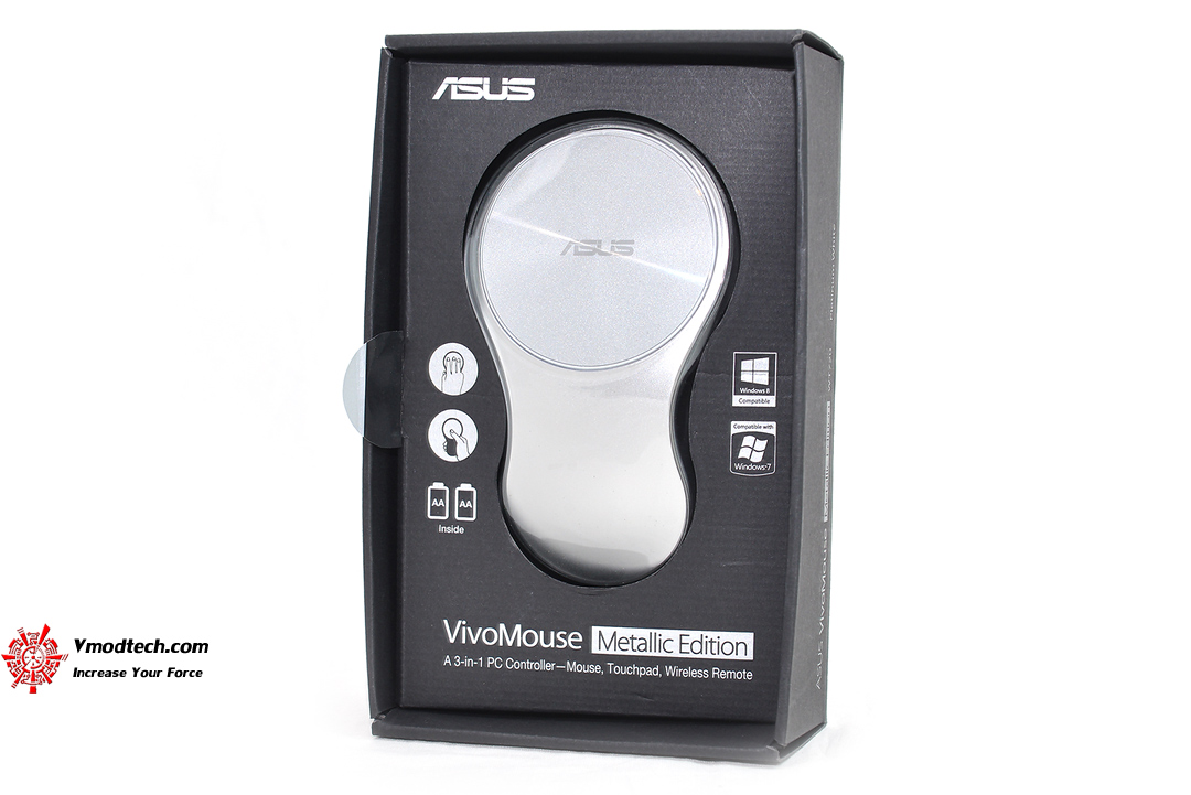 หน้าตากล่อง ASUS VivoMouse Metallic Edition ก็ออกแบบมาง่ายๆด้วยโครงสร้างกล่อกระดาษขึ้นรูป แต่มันเท่ห์ทีเดียวครับ