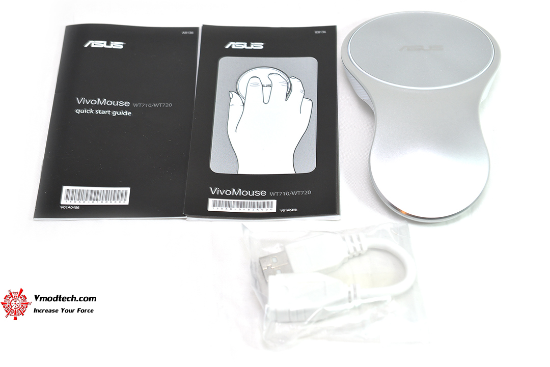 คู่มือแบบแผ่นพับสองแผ่น ตัวเมาส์และตัว Adapter พร้อมสายเชื่อมต่อเพื่อเพิ่มความยาวกรณีที่หลังเคสนั้นพื้นที่คับแคบ สามารถเอื้อมไปติดตั้งได้อย่างง่ายดาย