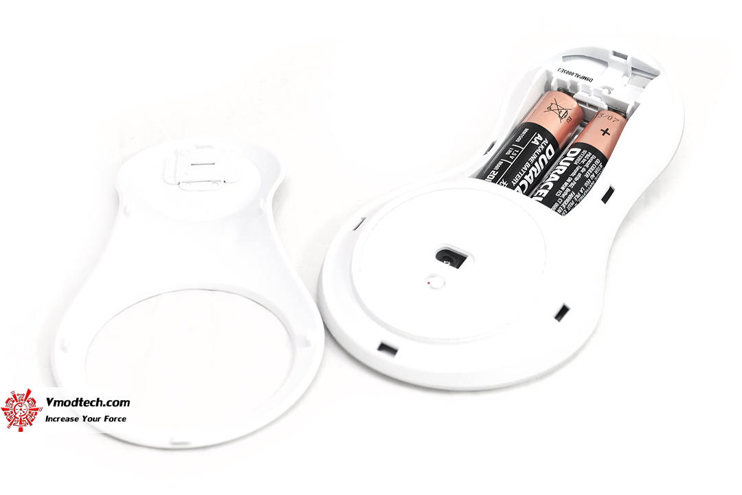 ด้านหลังจะเป็นส่วนของเซนเซอร์ทั่วๆไปเหมือนกับเมาส์ปกติ และจะมีรังถ่านสำหรับใส่ถ่านแบบ AA สองก้อน
