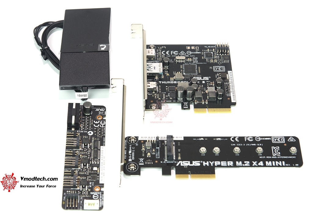 อุปกรณ์ เสริมสำหรับต่อพ่วงที่หลักๆก็จะมี ThunderboltEX, อะแด๊ปเตอร์แปลง ASUS HYPER M.2 X4 mini แล้วก็ FAN Extension Card รวมถึงเสา WIFI แบบ 3T3R อีกหนึ่งชิ้น
