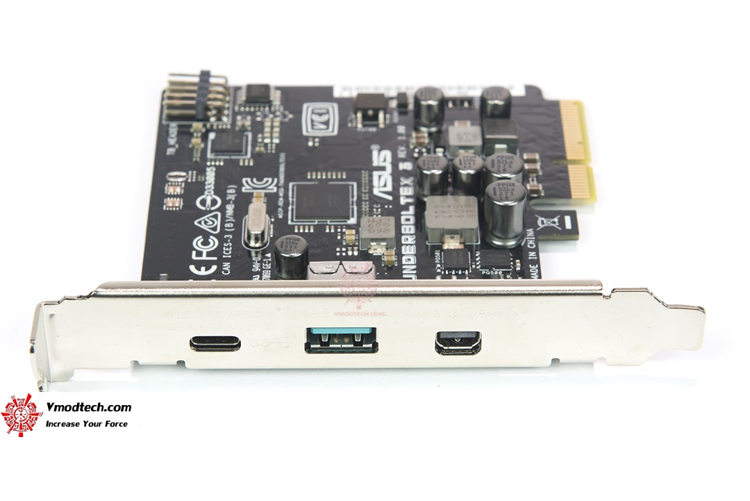 ThunderboltEX นั้นติดตั้งโดยการเชื่อมต่อทาง PCIe X4 ช่องเชื่อมต่อก็จะมี USB 3.1 Type C หนึ่งช่อง Type A แบบมาตรฐานหนึ่งช่อง และขวาสุดเป็น Thunderbolt