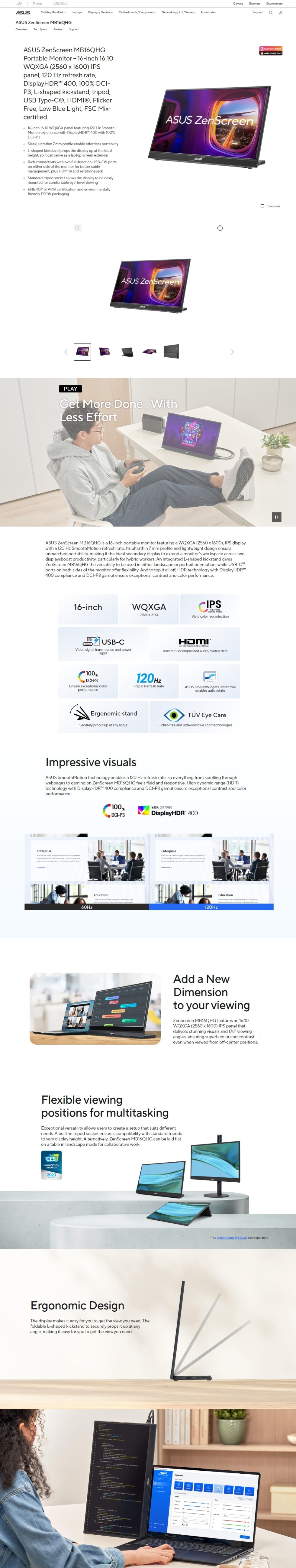 ASUS ZenScreen MB16QHG 16 inch WQXGA (2560 x 1600) IPS panel 120 Hz Review : Introduction (1/3)