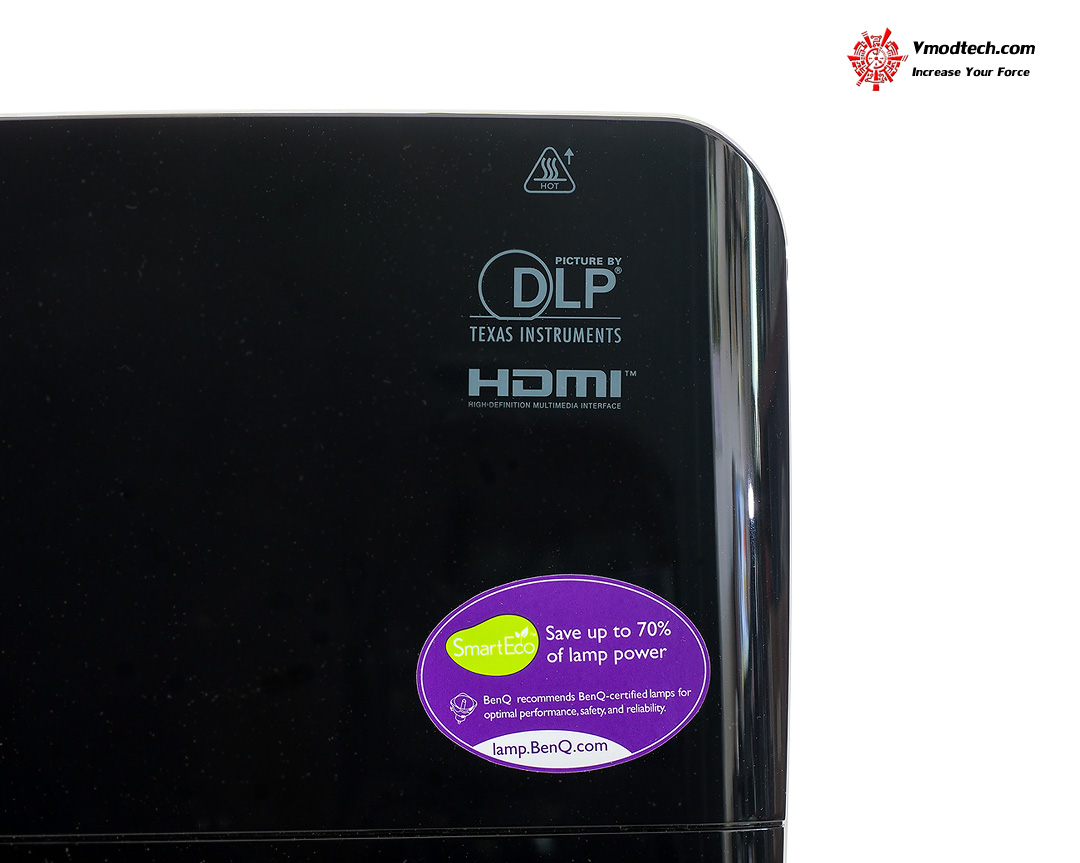 มีโชว์เสป็คว่าเป็น Projection ระบบ DLP และรองรับการเชื่อมต่อแบบ HDMI สกรีนไว้เลยครับ และสติ๊กเกอร์ SmartEco