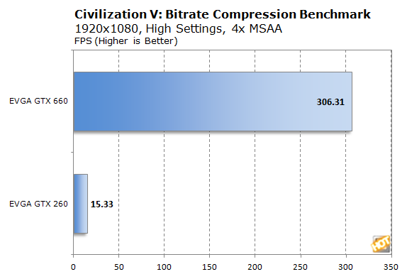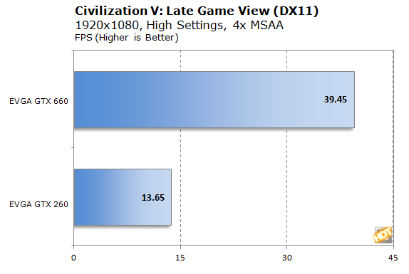 มันรันได้ไม่สู้จะดีนักด้วย GTX 260 ซึ่งอย่างน้อยบนโหมด DX10/DX11 แต่กับ GTX 660 นั้น มันทำผลงานได้ดีกว่าเกือบๆ 3 เท่า