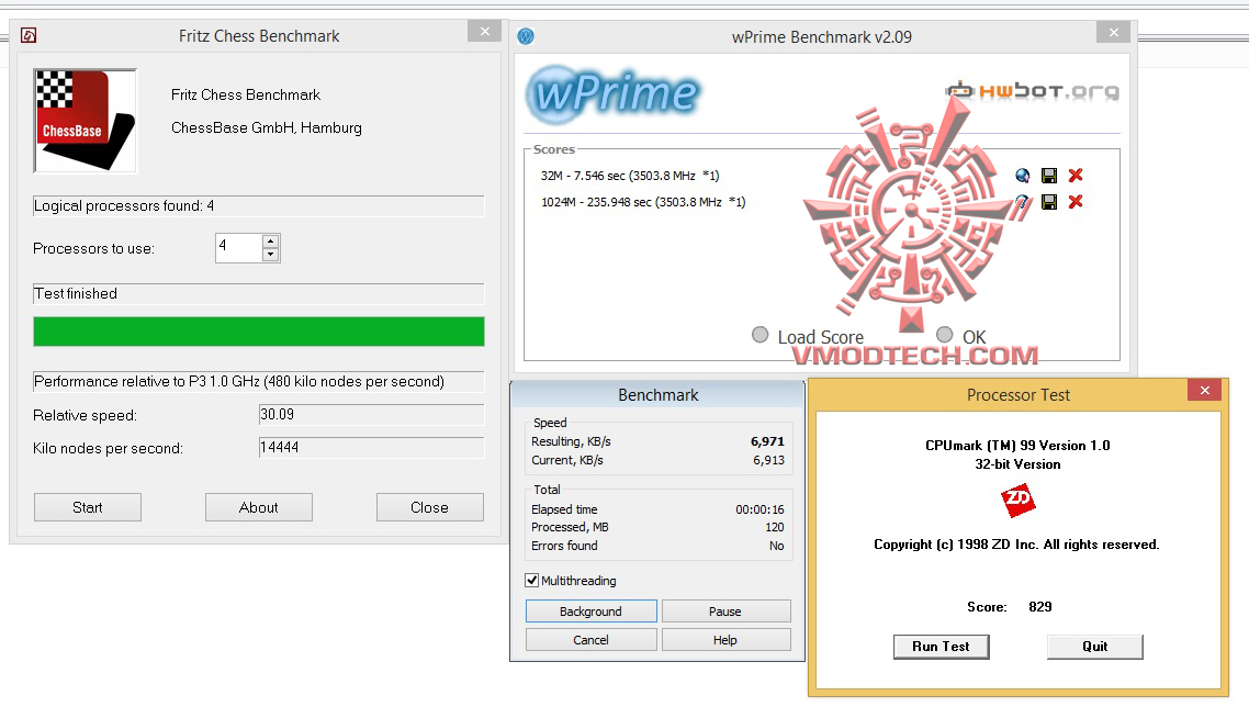 Fritz Chess Benchmark , Winrar , wPrime Benchmark v2.09