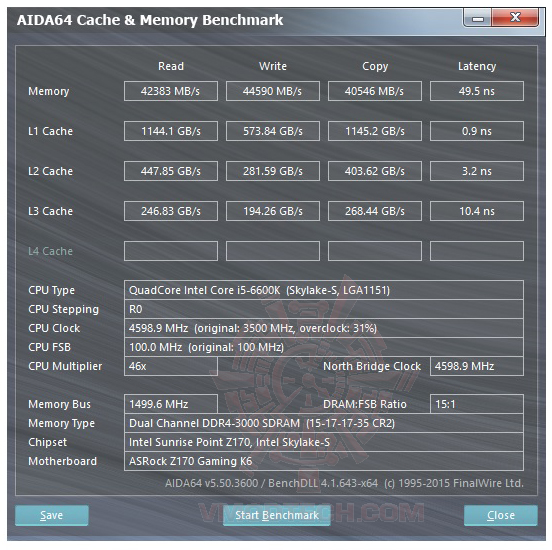 ค่า Memory Read, Write ก็ทำออกมาได้ดีครับอยู่ที่ Read 42383MB/s และ Write 44590MB/s แรงทั้งการอ่านและเขียนเลยครับ แรงเยี่ยมเลยครับ