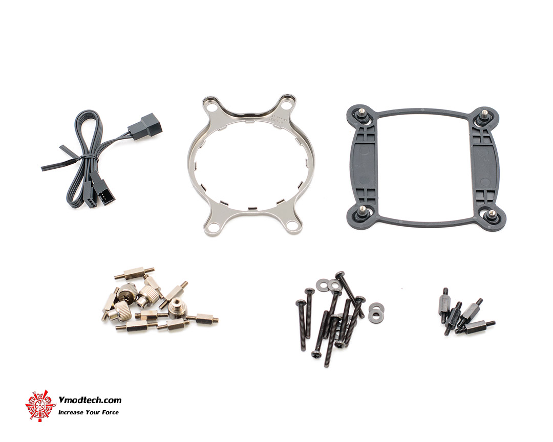 รายการของต่างๆที่บรรจุอยู่ในกล่อง ก็มี คู่มือ, พัดลม, ถุงใส่น็อตสกรูต่างๆ และ ตัว Liquid CPU Cooler