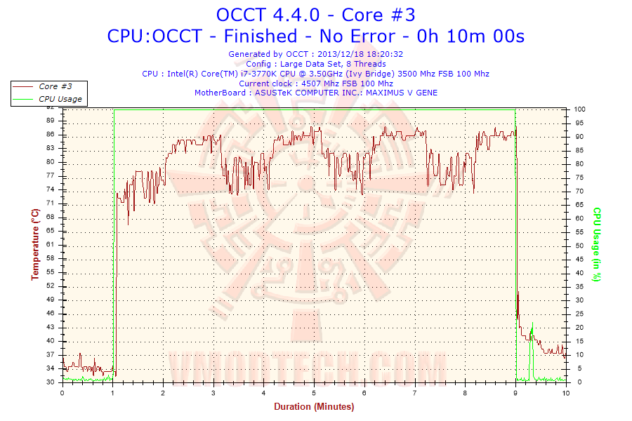 วันนี้ จะใช้ CPU I7 3770K ครับ Overclock ไปที่ 4.5 GHz ใช้ไฟเลี้ยงเกินขนาดไปที่ 1.4 V เรียกร้อนความออกมาให้สุดๆ