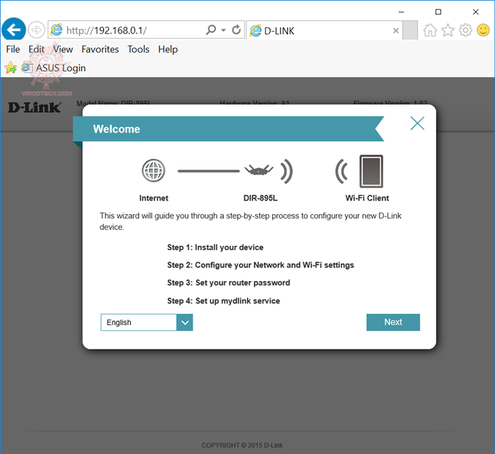 เมื่อทำการเสียบสายทั้งหมดเรียบร้อย เราสามารถเข้าไปตั้งค่าเริ่มต้นได้โดยเข้าไปที่ http://dlinkrouter.local หลังจากนั้นเราก็ปฏิบัติตามคำแนะนำที่หน้าจอได้เลย หรือถ้าต้องการปรับแต่งแบบละเอียดก็สามารถกดที่เครื่องหมาย X เพื่อข้ามขั้นตอนนี้ไปได้ครับ