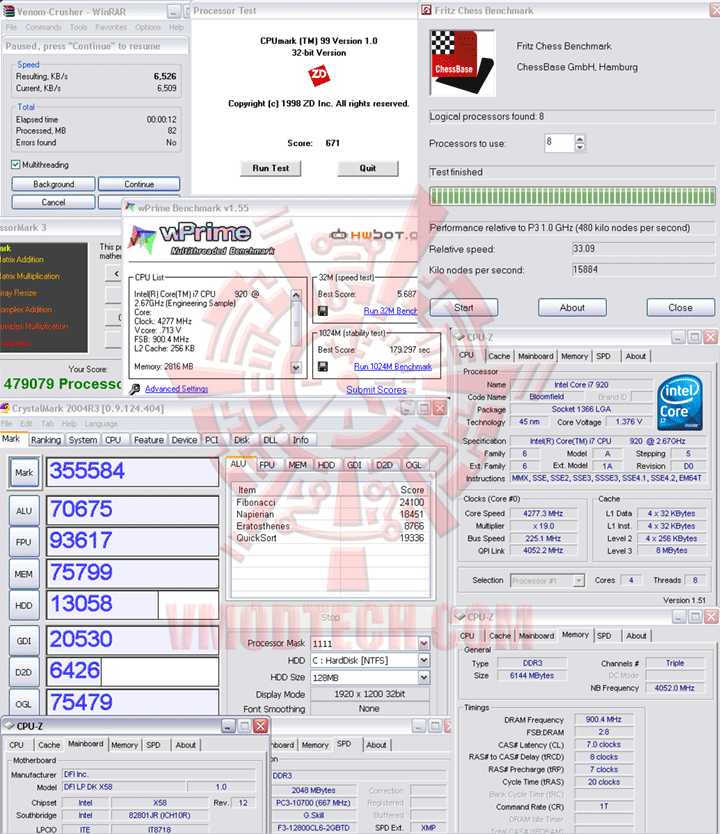 Winrar ,CPUMark99 ,ProcessorMark3 ,Fritz Chess ,wPrime1.55 & CrystalMark 2004R3