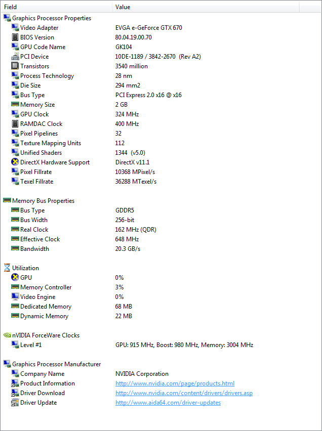 EVGA GEFORCE GTX 670 Detail from AIDA 64