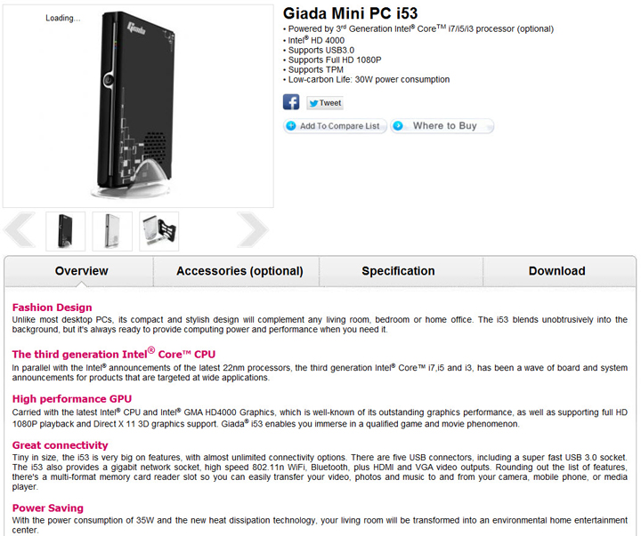mainสวัสดีครับ ช่วงนี้ผมว่าตลาดคอมพิวเตอร์ราคาประหยัดค่อนข้างซบเซาพอควรจากที่ได้เดินๆสอบถามตามร้านฮาร์ทแวร์พรรคพวกในระยอง ทั้งนี้ก็ด้วยว่าในเรทราคาประมาณ 5000-15000 เนี่ยมันมีแท๊บเบล็ทและ laptop ขนาดกลางมาแทรกช่องว่างนี้อยู่ ถ้าจะมองการใช้งานของยูซเซอร์อย่างพวกเราๆเนี่ย จะเห็นได้ว่าการใช้งานคอมพิวเตอร์ก็จะจำกัดอยู่ที่วงของการใช้งานอยู่แค่เล่นเนต เล่นเฟส ดูเมล์ หรือว่าเล่นเกมส์ออนไลน์เบาๆ ซึ่งการตอบสนองของอุปกรณ์นั้น ก็แค่มีแท๊บเบล็ทซักตัวนึงหรือว่า Laptop ก็สามารถตอบสนองงานที่ว่านี้ได้แล้วในเรทราคาที่ว่า จะมีอีกกลุ่มนึงคือกลุ่มที่เล่นเกมส์แบบซีเรียสหรือว่าพวกที่ยังรักที่จะเล่น Overclock ก็จะเลือกใช้งานคอมโพเน้นท์ที่แรงๆและมีราคาแพงกระโดดไปเลย ยังมีอีกกลุ่มนึงครับที่ต้องการใช้คอมพิวเตอร์เพื่อเป็นศูนย์กลางความบันเทิงในบ้าน บ้างก็ยังใช้คอมพิวเตอร์เล็กๆ หรือว่า Laptop ตัวเล็กๆเป็นศูนย์กลาง แต่ก็อย่างว่าครับ ขนาดและความสวยงามมันคงไม่ตรงจุดของความต้องการนี้นัก นั่นเองที่ทำให้ Mini PC เข้ามาอุดช่องว่างที่ว่า ด้วยความสวยงามในการออกแบบ ประหยัดพลังงาน และที่สำคัญความแรงนั้นก็ไม่ได้เป็นรองคอมพิวเตอร์เดสท๊อปหรือ Laptop ทั่วๆไปด้วย วันนี้ผมได้รับ Mini PC จากพรรคพวกมารุ่นนึงครับ ชื่อว่า Giada MINI PC i53 ซึ่งเป็นมินิ พีซีที่ขนาดเล็กแค่ครึ่งนึงของ A4 เท่านั้น ความหนาก็แค่ไม่เกินสามเซ็นติเมตร ว่ากันคร่าวๆนะ อยากจะนำมาให้สมาชิกพิจาราณาครับ Giada Website