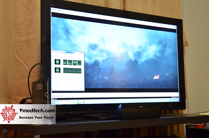 กับการชมภาพยนต์ Full HD นั้น ไม่มีปัญหาครับ ราบรื่น ไม่กระตุกให้เสียอรรถรสในการรับชมเลย แม้ว่าในการรับชมภาพยนต์นั้นจะเกิดโหลดที่ CPU ประมาณ 30-40 เปอร์เซนต์ก็ไม่ได้กระทบต่อการใช้งานในเวลานั้น ตรงนี้สอบผ่านครับ