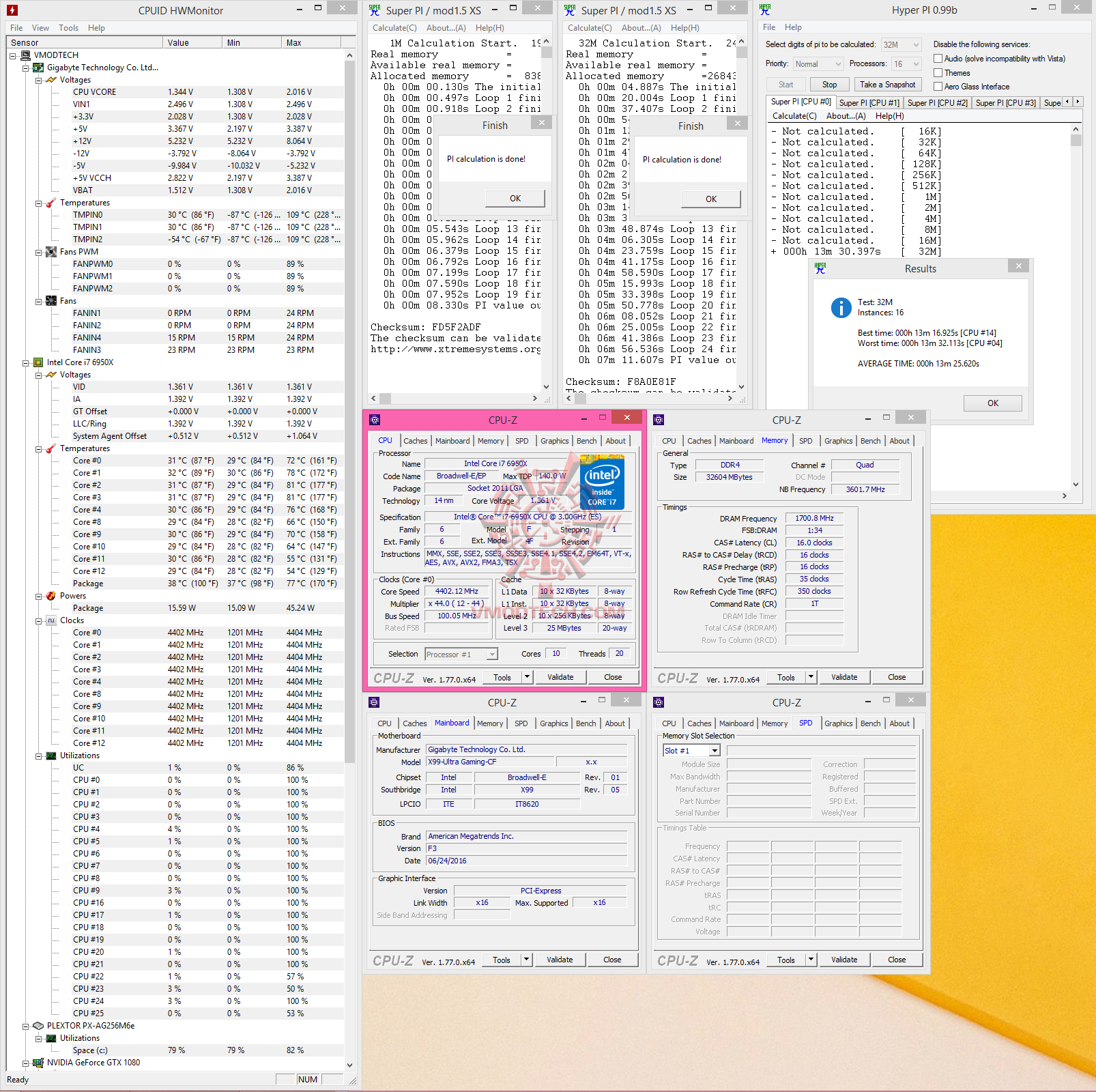 แรงเสถียรผ่านกันแบบนิ่มๆ กับ SuperPI 32M พร้อมกัน 16 เธรด ด้วยเวลาเฉลี่ยทุกๆเธรดที่ 13.25.620 นาที