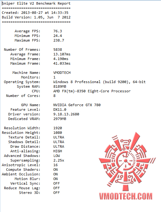 GIGABYTE GeForce GTX 780 New WINDFORCE 3X Rev 2.0 ON AMD FX-8350 : Sniper Elite V2 (16/19)