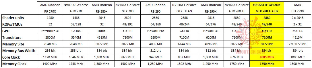 ความแตกต่างที่เพิ่มขึ้นมาจาก GIGABYTE GeForce GTX 780 Ti GHz Edition WINDFORCE นั้นก็คือความเร็วของ Core ที่อัดมาให้ใช้งานสบายๆไม่ต้องเค้นที่ 1085 MHz