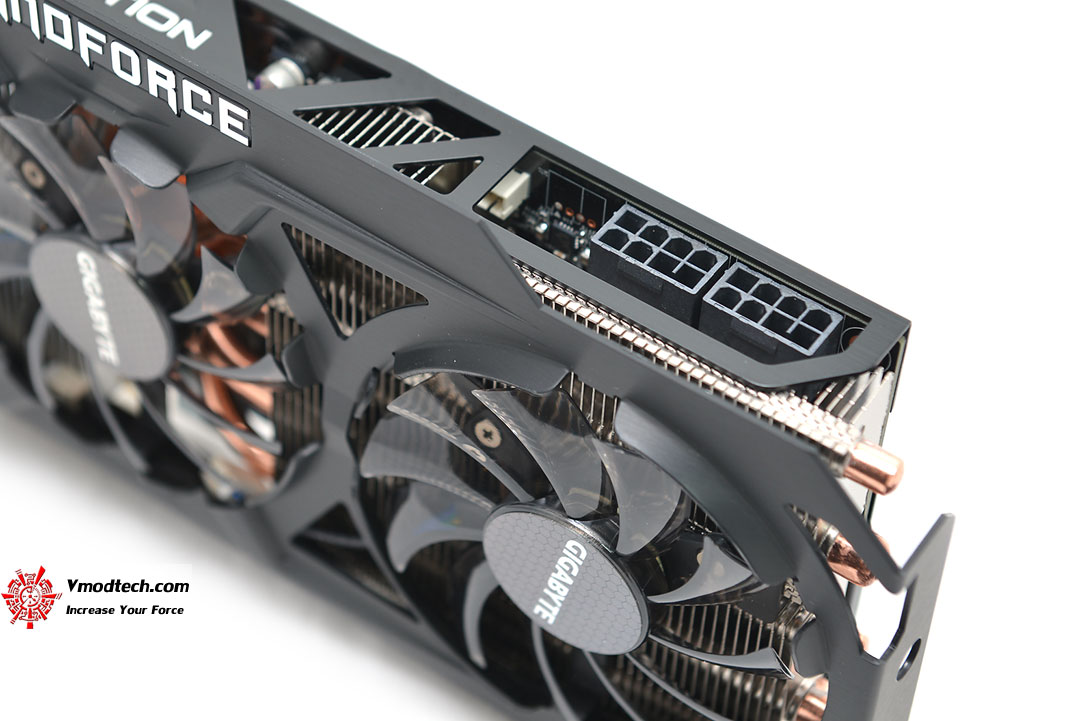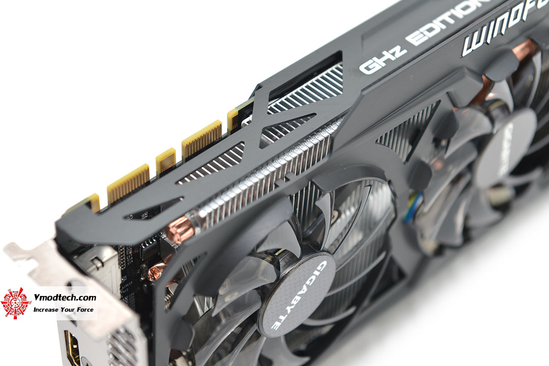 หน้าตาของการ์ดพร้อมกับชุดระบายความร้อน GIGABYTE GeForce GTX 780 Ti GHz Edition WINDFORCE แบบสามพัดลมครับ ตัวการ์ดมีความหนาสองสล๊อดครับ