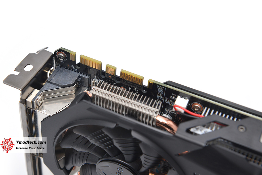 ด้านท้ายการ์ดนั้นจะเห็นว่าโครงของชุดระบายความร้อนนั้นถูกดัดพับมาสวยงามพร้อมลบคมอย่างหมดจด