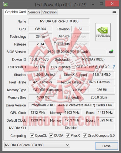 GIGABYTE GeForce GTX 980 G1 GAMING 4GB from GPUZ