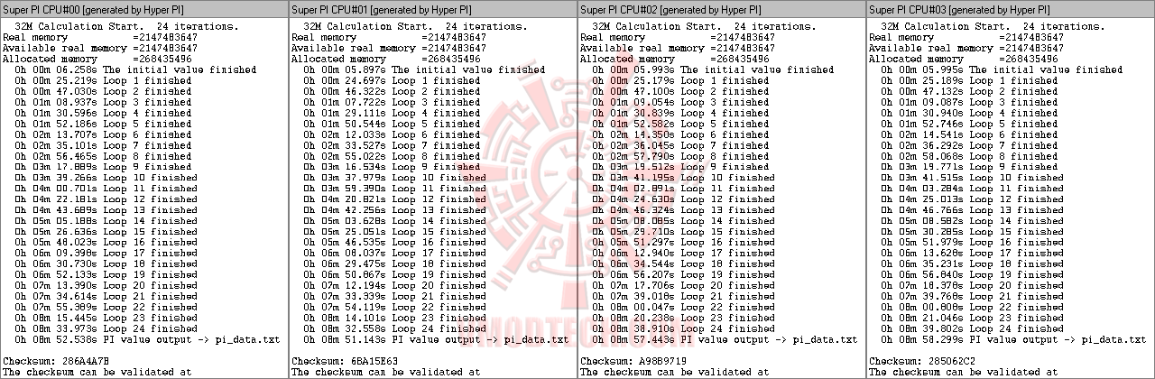 ...อย่าง น้อยต้องผ่านSuperPI 32M ทุกหัวเท่าที่มี ตามมาตรฐานต่ำสุดของทาง Vmodtech.com ซึ่งที่ความเร็วแบบระห่ำทุกส่วนนี้ ก็ผ่านกันไปอย่างเรียบร้อยครับ