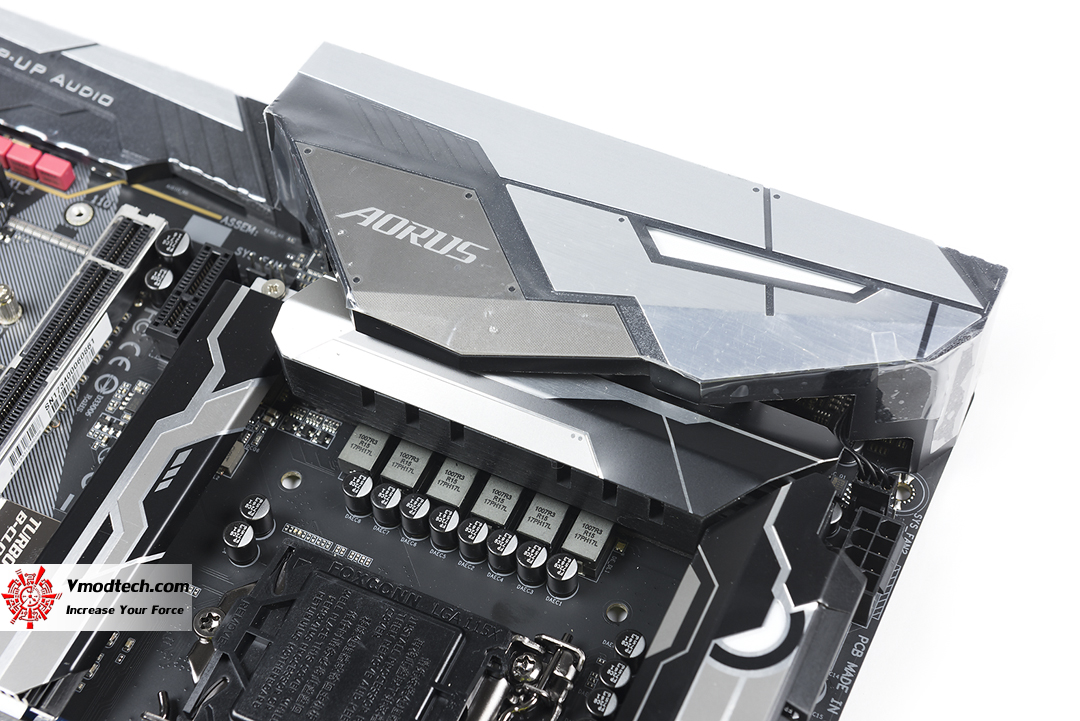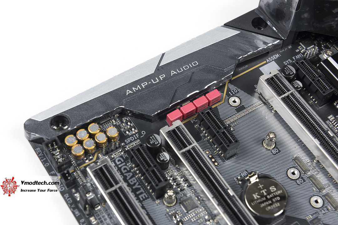บริเวณขอบภาคเสียงซึ่ง GIGABYTE เน้นมากครับและได้ทำการปรับแต่งด้วย AORUS Audio โดยเลือกใช้คาปาซิเตอร์แบบออดิโอเกรดที่จะช่วยยกระดับคุณภาพเสียง