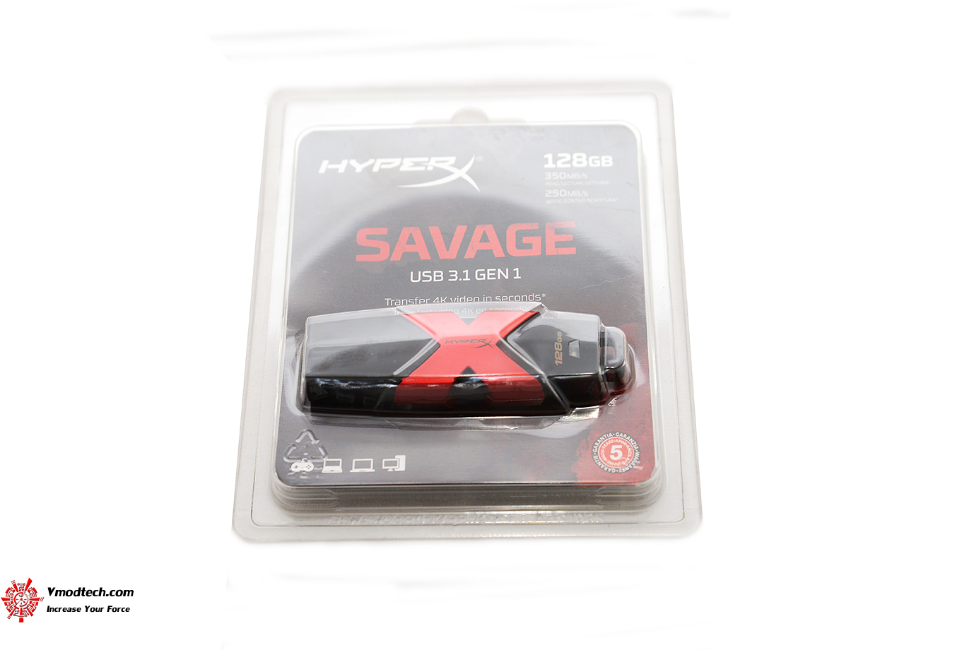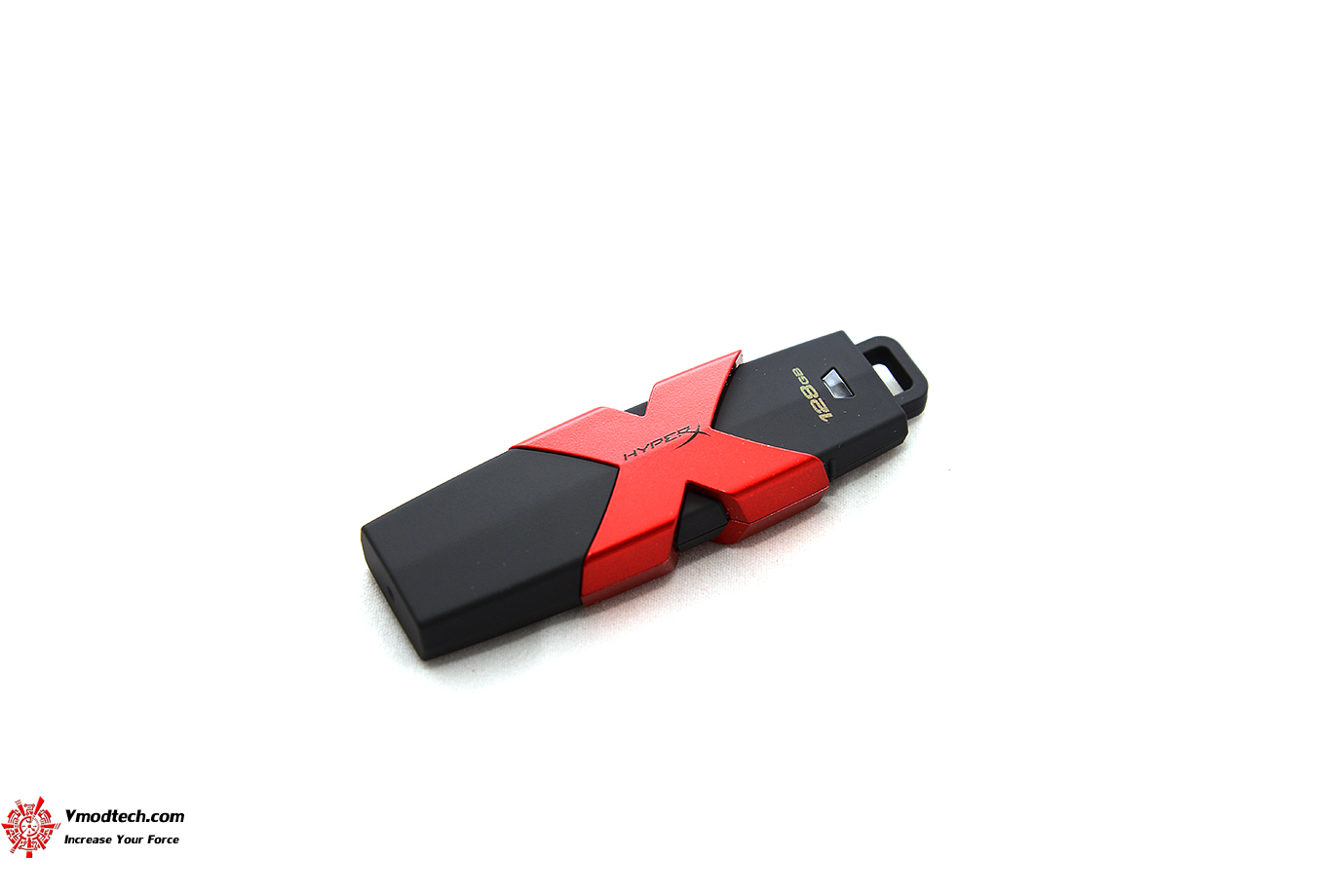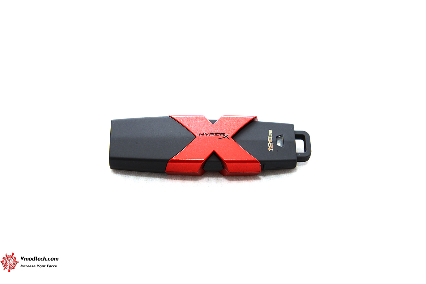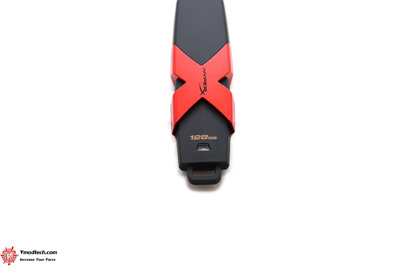 ตัวของ HyperX Savage USB 3.1 Gen1 128GB Flash Drive นั้นมากันในสีดำสลับแดง โดยมีโลโก้ตัว X อยู่ตรงกลางเป็นสัญลักษณ์บ่งบอกรุ่น HyperX พร้อมทั้งบอกขนาดความจุ 128GB ครับ