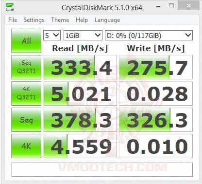ประสิทธิภาพ ของการอ่าน/เขียนจาก CDM นั้นถือว่าแรงมากเลยทีเดียวครับ โดยการอ่านนั้นอยู่ที่ 378MB/s และการเขียนอยู่ที่ 326MB/s กันเลยทีเดียว ซึ่งแฟลสไดร์ธรรมดาทั่วไปอยู่แค่การอ่านอยู่ประมาณราวๆ 20MB/s และการเขียนอยู่ที่ 10MB/s เท่านั้นเอง ถือว่าแรงทะลุสเปกที่เคลมกันเอาไว้อย่างมากเลยทีเดียวครับ .