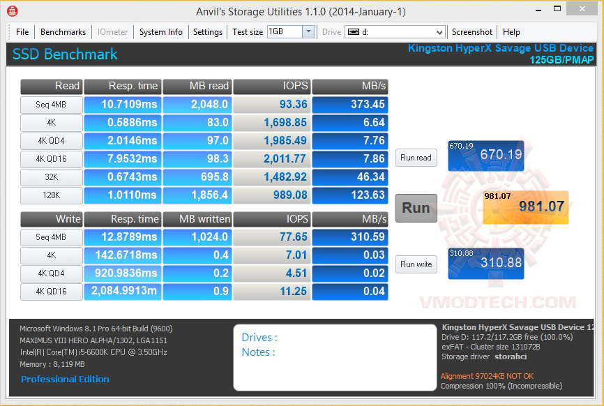 HyperX Savage USB 3.1 Gen1 128GB Flash Drive Review : Disk Benchmark (4/5)