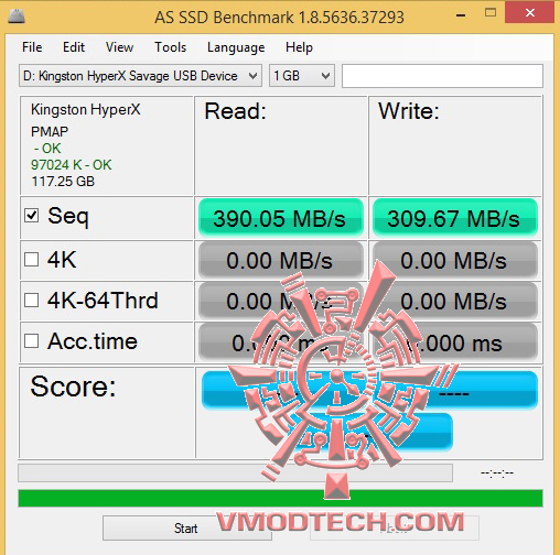 AS SSD Benchmark ประสิทธิภาพความแรงนั้นเกินมาตรฐานที่เคลมกันมาครับกับความแรง ที่การอ่านอยู่ที่ความเร็ว 390MB/s ส่วนการเขียนอยู่ที่ 309MB/s แรงกันแบบทะลุสเปกที่เคลมกันเอาไว้อีกแล้วครับ