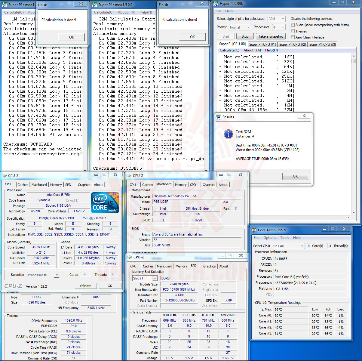 Intel Core i5 750-GIGABYTE P55-UD3P overclocking test