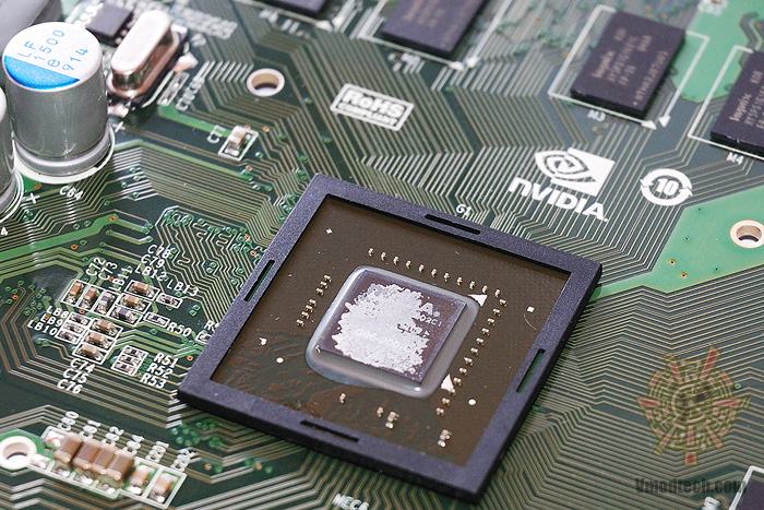 ฮีทซิงค์ถอดง่าย (มาก) ทำให้เห็นตัวชิป G96 ตัวเป็นๆกันครับ มีที่รองกันคอร์บิ่นด้วย
