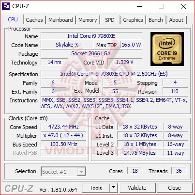 อย่างที่ได้กล่าวไปแล้วว่า Intel Core i9-7980XE Skylake-X นั้นเป็น CPU ที่มี 18 คอร์ ทำงานทั้งหมด 36 Thread บนพื้นฐานสถาปัตยกรรมขนาด 14nm ใช้ชิบเซต X299