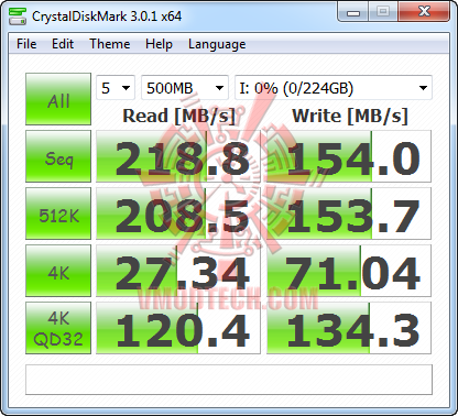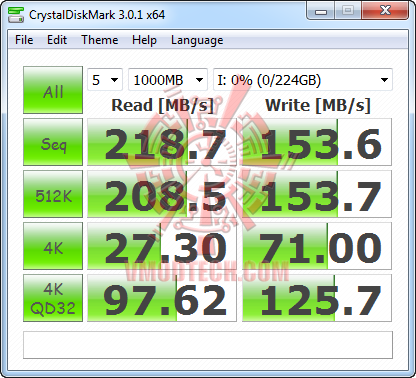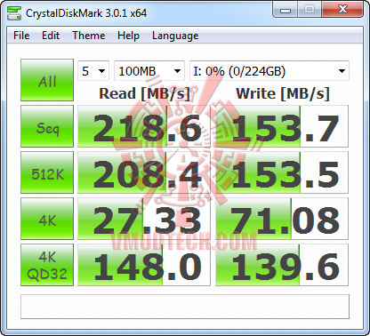 Benchmark จาก CDM นั้นอยู่ที่แถวๆสองร้อยสำหรับการอ่าน และร้อยห้าสิบสำหรับการเขียน หน่วยเป็น MB/s นะครับ
