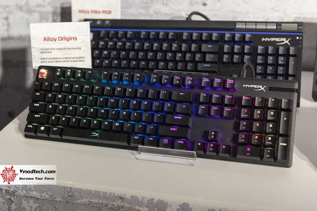คีย์บอร์ดนั้นก็มีการออกแบบเพิ่มเติมขึ้นมาโดยจะมีตัวคีย์บอร์ดเกมมิ่งแบบ แมคคานิคอล Alloy OriginsTM - คีย์บอร์ดเกมมิ่งแบบ แมคคานิคอล รุ่นใหม่ของ HyperX Origins ใช้สวิตช์แมคคานิคอล HyperX โดยสวิตช์ HyperX ใหม่สีแดง ซึ่งมีจุดตอบสนอง 45g ใช้ระยะการกดสั้นลงและใช้งานได้สูงสุด 80 ล้านคลิ๊กตลอดอายุการใช้งาน Alloy Origins ให้แสงแบบไดนามิกพร้อม LED แบบสัมผัสบนคีย์สวิตช์ ให้แสง RGB ที่สว่างและกระจ่างใสขึ้น