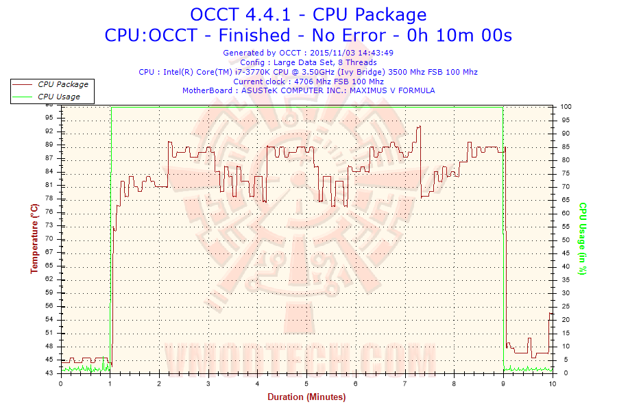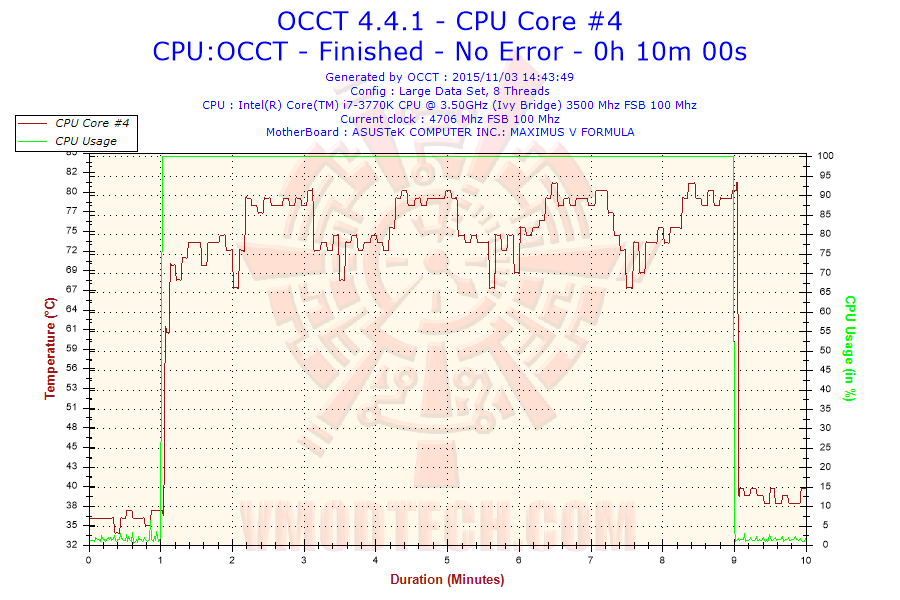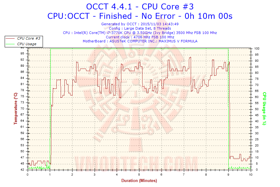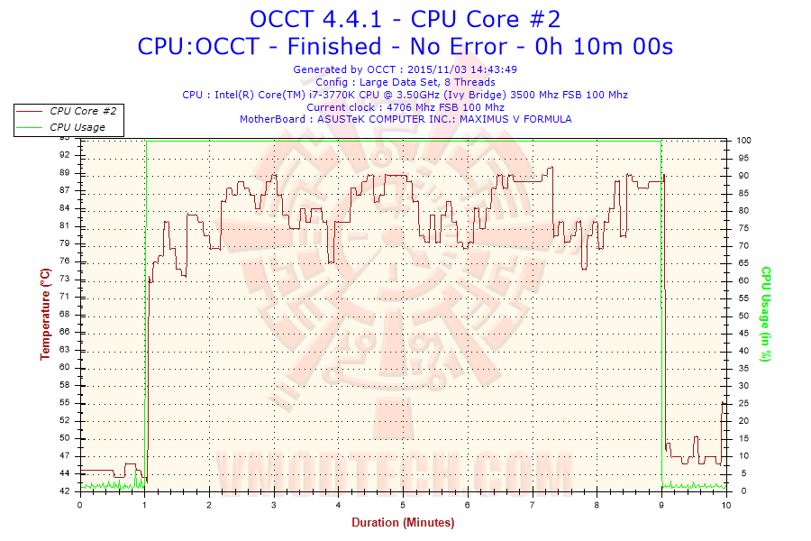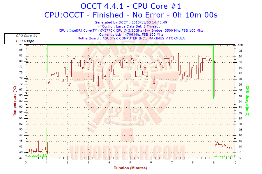 จะเซ็ต OCCT 4.4.1 ที่โหมด CPU OCCT Large Data Set เป็นเวลา 10 นาที วอร์มอัพหัวท้ายอย่างละ 1 นาทีครับ