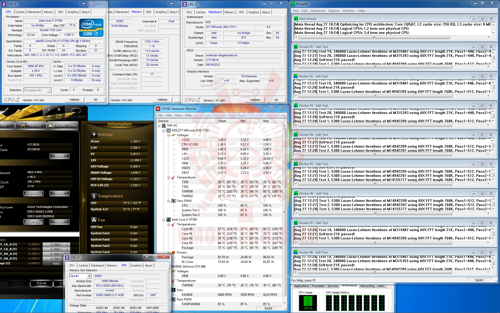 ...วันนี้มีจัดโหด Prime95 กันหลายดอกหน่อยนะครับให้สมกับคอนเซปต์หลักของบอร์ดรุ่นนี้ 4.806 GHz Vcore 1.360V DDR3 2670 CL11-13-13-28-1T 1.65V ก็ผ่านกันสบายๆกับ Blend Mode ที่ 2 ชั่วโมงครับ