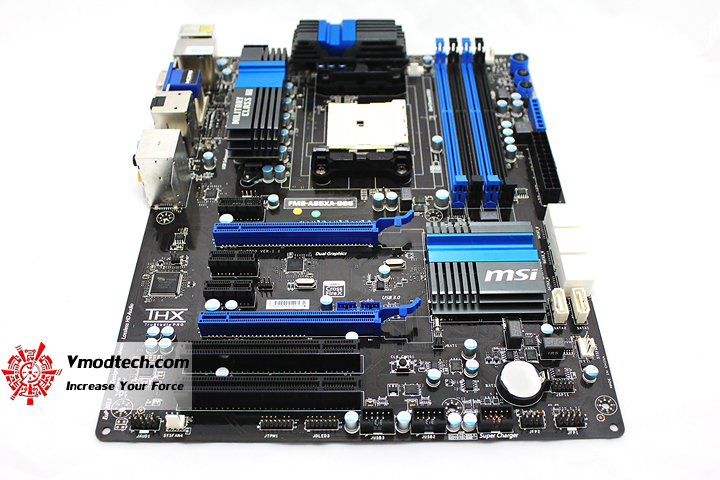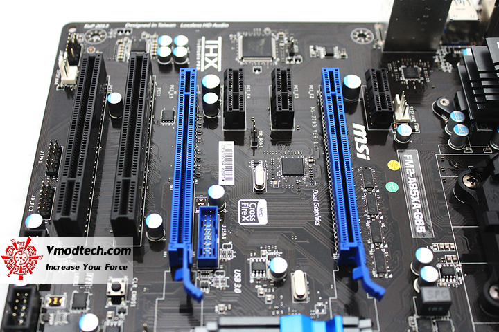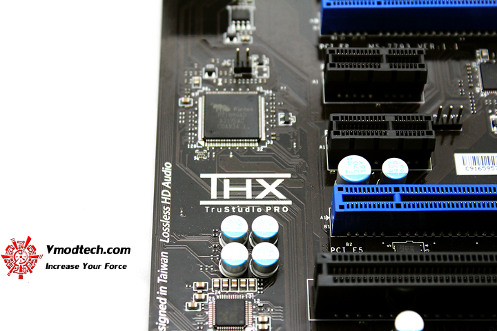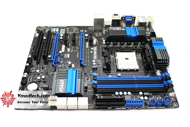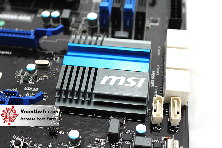 ตัวเมนบอร์ดPCBสีดำสนิทครับผมสลับกับฮีตซิงค์สีฟ้าและสล๊อตต่างๆสลับสีฟ้าสวยงามตามแบบฉบับ MSI เลยครับ