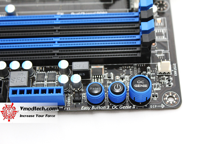 สวิตช์ปุ่ม Power , Reset , และปุ่ม OC Ginie II สำหรับโอเวอร์คล๊อกกันอย่าง่ายดายเพียงแค่ปลายนิ้วจิ้มลงไปให้ไฟติดครับผม