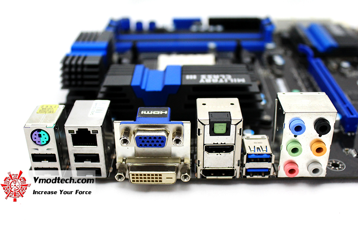 พาเนลด้านหลังเมนบอร์ดก็ให้กันมาเยอะเลยทีเดียวครับไม่ว่าจะเป็น ช่อง USB 3.0 2ช่อง , USB 2.0 4ช่อง , Display Port , VGA , HDMI , DVI , LAN และ Audio Port ให้กันมาอย่างครบครับผม
