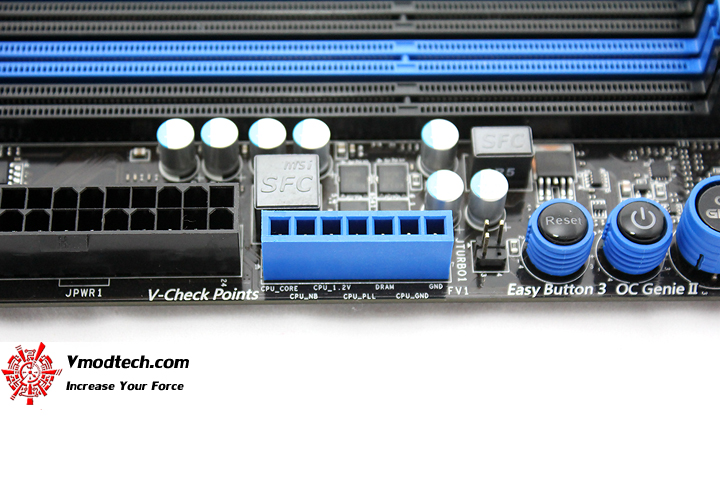 V-Check Point ช่องเสียบสายโพรบต่อดูสถานะไฟการทำงานของระบบต่างๆทั้งซีพียู แรม ในกรณีที่เราโอเวอร์คล๊อกแบบเอ๊กซ์ตรีมลงบ้องกันนั่นเองครับ