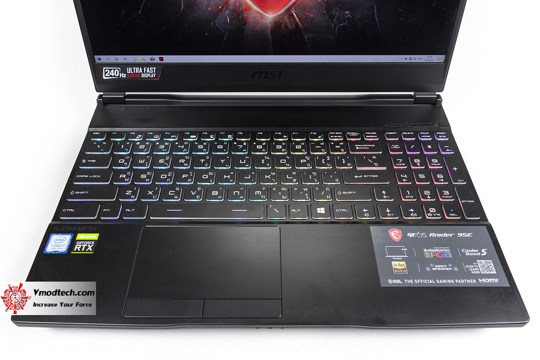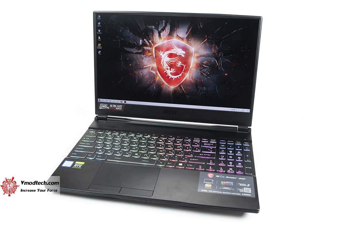 MSI GE65 Raider 9SE นั้นก็สวยงามแบบเรียบๆ หน้าจอมีขนาด 15.6 นิ้ว ความละเอียด 1920 x 1080 หรือ Full HD รีเฟรชเรท 240Hz ลื่นๆเลย