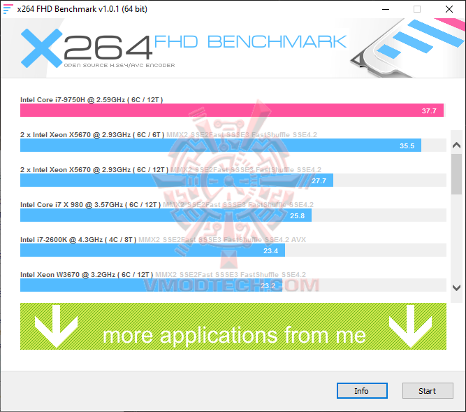 ผล Benchmark นั้นได้ที่ 37.7 fps เร็วใช้ได้เลย ความร้อนสูงสุดเมื่อรัน X264 จะอยู่ที่สูงสุด 97-98 องศาเซลเซียสครับ เสียงพัดลมจะเริ่มได้ยินพอควรเมื่อมีโหลดหนักๆแบบนี้