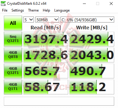ความเร็วในการอ่าน/เขียน SSD นั้นอยู่ในเกณฑ์ที่ดีมากครับที่ประมาณ 3200 เมกกะไบท์ต่อวินาทีสำหรับการอ่าน และสามารถเขียนได้สูงถึง 2300-2400 เมกกะไบท์ต่อวินาทีเลย