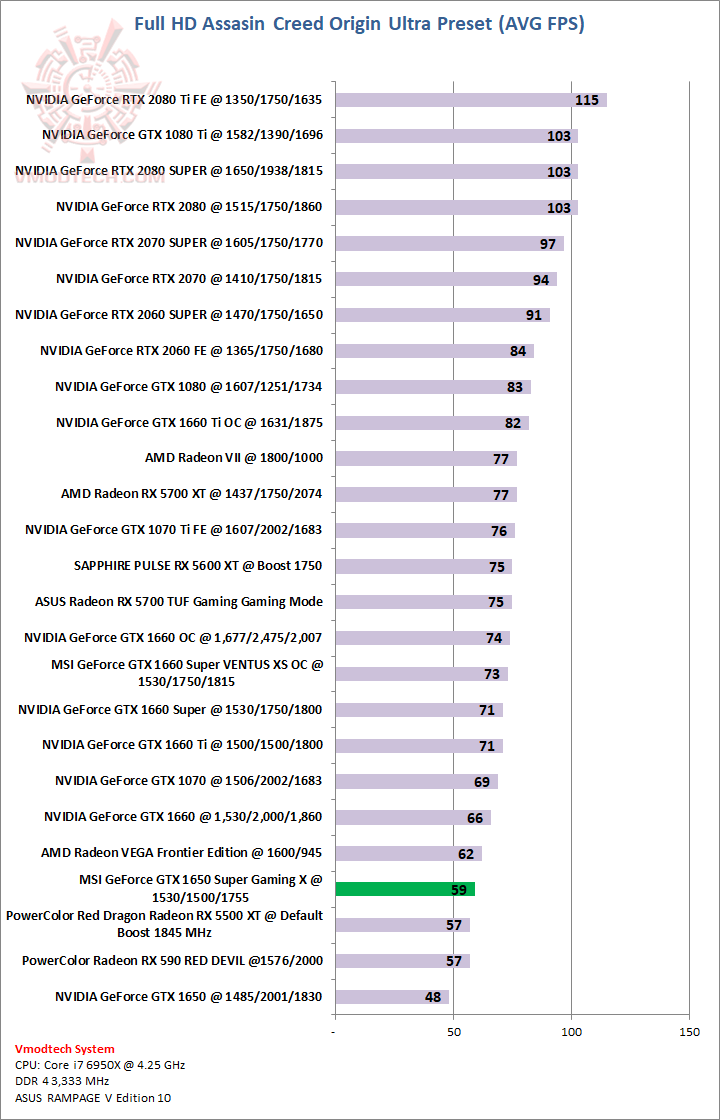MSI GeForce GTX 1650 SUPER GAMING X Review : Full HD - Assassin's Creed Origins (12/18)