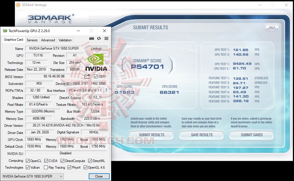 MSI GeForce GTX 1650 SUPER GAMING X Overclock @ 1693/1762/1918